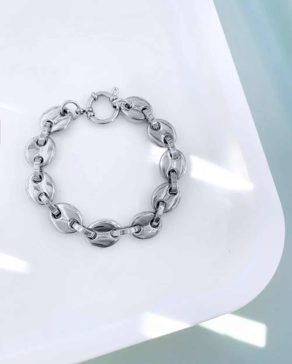 Массивный браслет из нержавеющей стали.