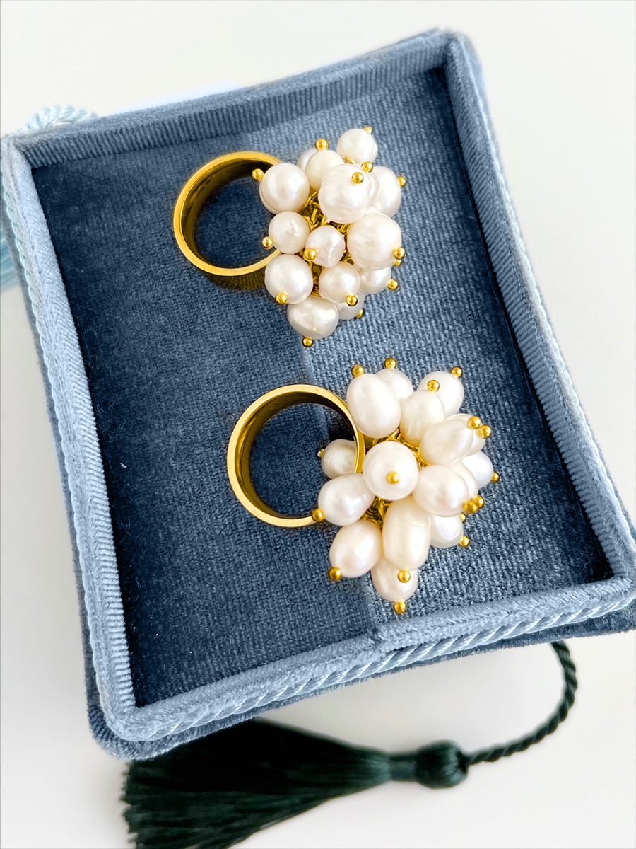 Кольцо-основа с гроздью культивированного пресноводного жемчуга-стилизация бренда кольца основы