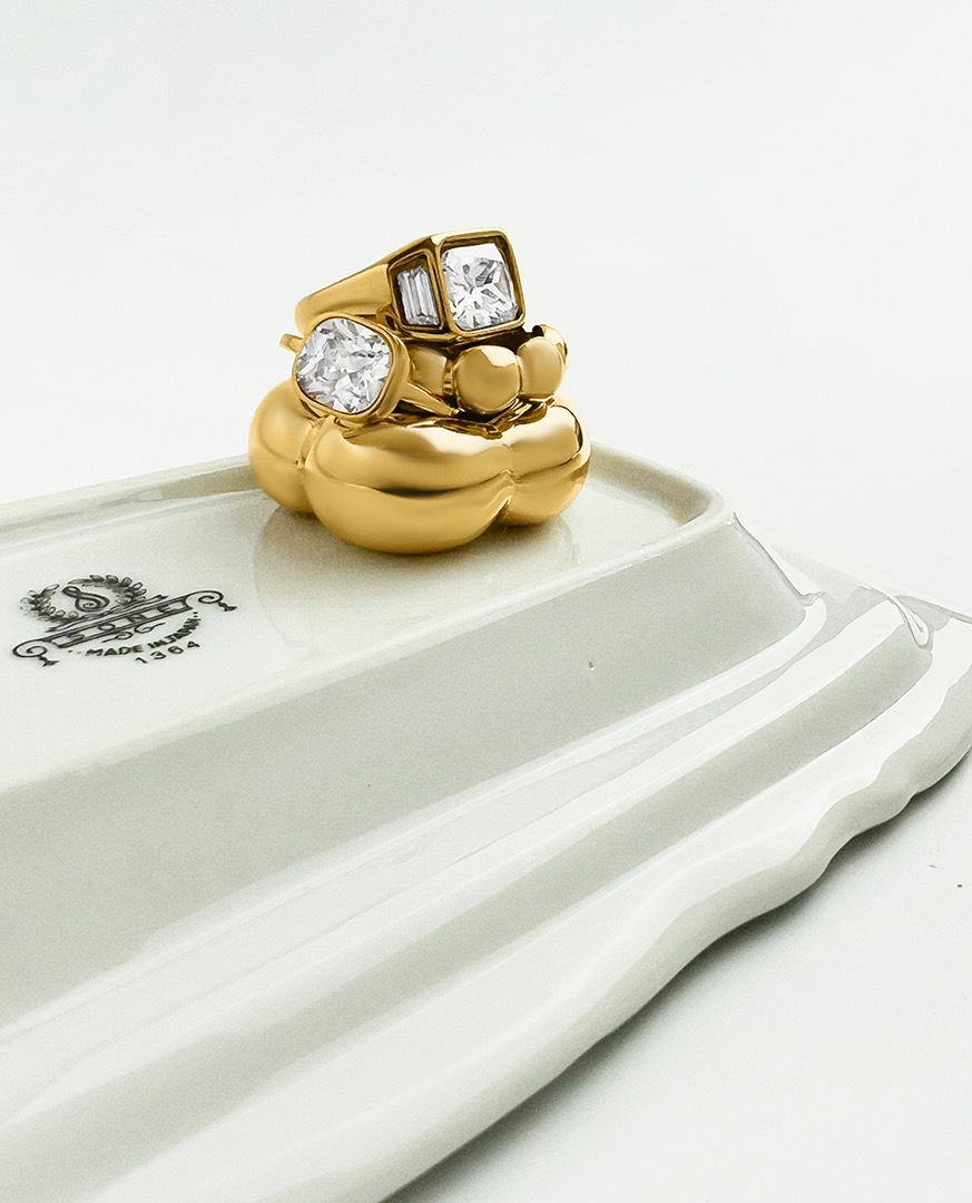 Кольцо в форме крупных, полированных полусфер идеально сочетается по цвету, форме и стилю с другими массивными кольцами из коллекции Balkon!