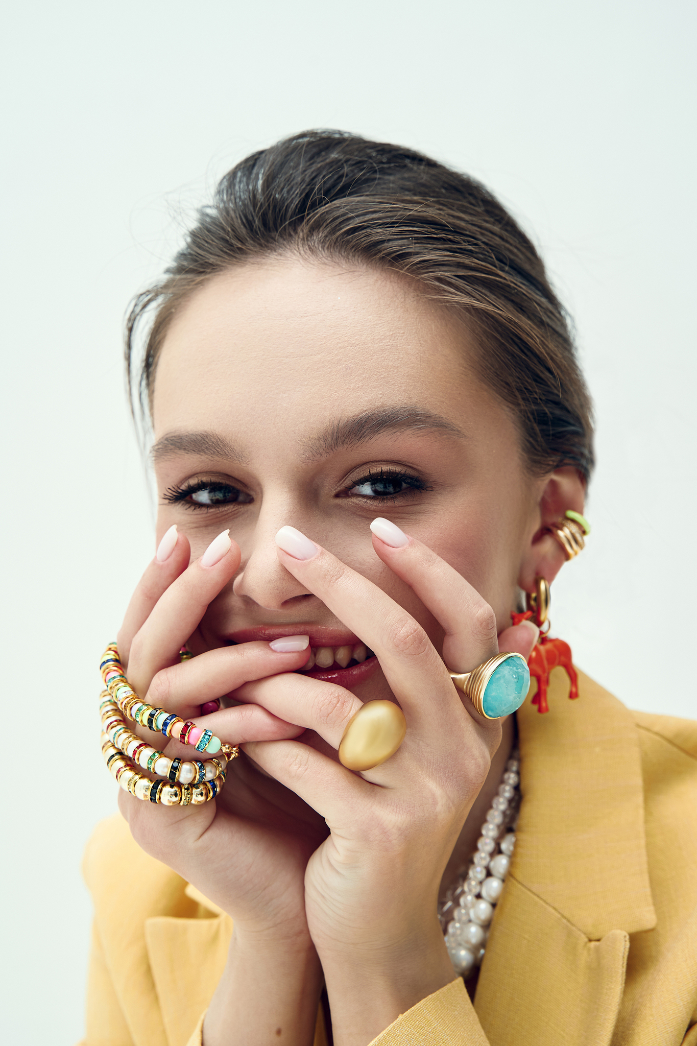 Кольцо с крупным кабошоном из камня идеально миксуется по цвету, форме и стилю-правил нет!
