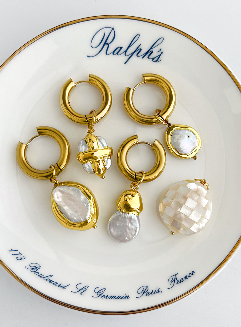 Подвеска из культивированного пресноводного жемчуга прямоугольной формы с золотистым обрамлением